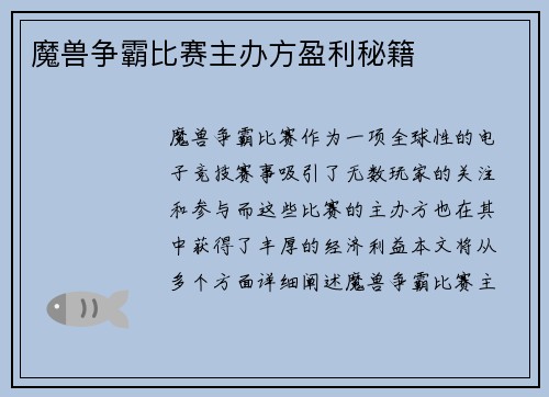 魔兽地图炮使用方法 介绍 魔兽地图炮是魔兽世界中的一种强力攻击技能,可以对敌方单位造成大量伤害。它在游戏中的使用方法需要一定的技巧和策略。本文将详细介绍魔兽地图炮的使用方法,帮助玩家更好地利用这一技能。 1. 了解技能特点 魔兽地图炮是一个范围攻击技能,可以对目标周围的敌方单位造成范围伤害。在使用之...