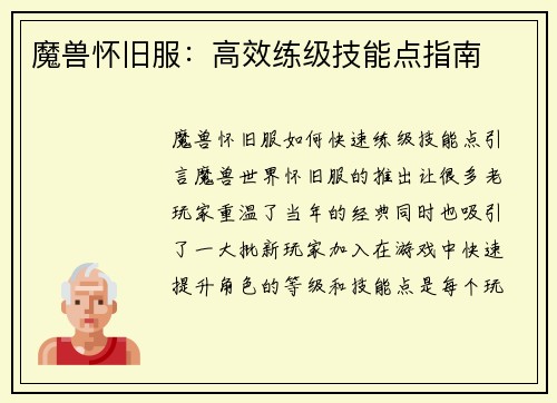 魔兽正式服150级如何满级技能 在魔兽世界游戏中,技能的提升是玩家成长的重要一环。达到150级后,玩家可以解锁更高级的技能和天赋,提升自己的战斗能力。本文将从多个方面详细介绍如何在魔兽正式服150级满级技能。 1. 了解技能系统 在魔兽世界中,每个职业都有独特的技能系统。在满级之前,玩家需要了解自己...